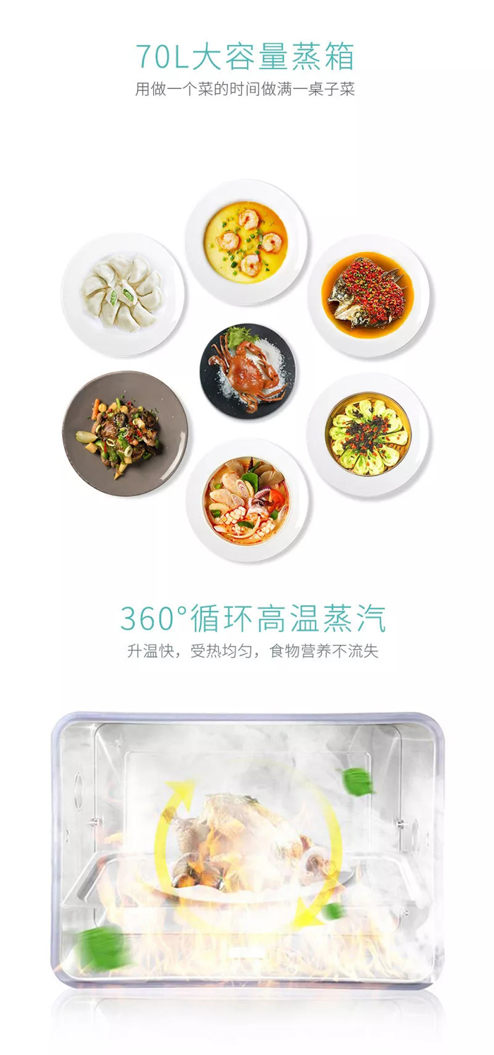 擁有70L大容量蒸箱